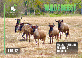 0.1Wildebeest Wildebeest Female - Offered is a exposed mature wildebeest cow. The herd has a proven history of successfully producing offspring. This cow would make a strong and valuable addition to your herd. Pictures taken from the actual herd on the ranch. Individual animal may vary slightly due to capture, but quality is consistent across the herd. She is located in Burleson County. Spring 2026 Global Wildlife Solutions Exotic Wildlife Auction | 30 | $ 5,000.00 |