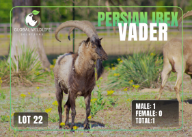 1.0 Persian Ibex Vader is an impressive animal that stands out with both quality and eye appeal. He carries strong 42-inch genetics, and his potential is clear, just look at his great-grandfather for an idea of what he can produce. Originally acquired from Pura Vida Ranch, Vader comes from proven, high-quality stock and would be a great addition to any ranch. He has been raised in a half-acre pen.Don’t miss the opportunity to add this outstanding animal to your program! Located in Smith Co.. Spring 2026 Global Wildlife Solutions Exotic Wildlife Auction | 22 | $ 2,625.00 |