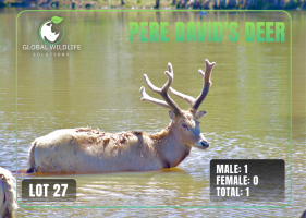 1.0 Pere David’s Deer This stunning Père David’s deer, native to China and once extinct in the wild, is a exciting and remarkable opportunity.Raised within a 4-foot fence and accustomed to people, it is highly visible and perfect for close-up viewing.An eye-catching addition for any safari park or ranch, don’t miss your chance to own this incredible animal. The picture is of the actual animal. Located in Smith Co. Spring 2026 Global Wildlife Solutions Exotic Wildlife Auction | 16 | $ 3,450.00 |