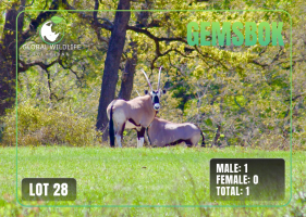 1.0 Gemsbok This male Gemsbok combines striking visual appeal with reliable quality. From a reputable herd, he is a strong, healthy animal ready to make a valuable addition to any herd or program. Pictures taken from the actual herd on the ranch. Individual animal may vary slightly due to capture, but quality is consistent across the herd. Located in Burleson Co. Spring 2026 Global Wildlife Solutions Exotic Wildlife Auction | 28 | $ 4,325.00 |