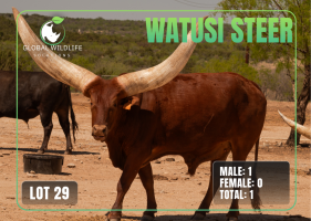 1.0 Watusi Steer 1.0 Watusi Steer - “Titan” The picture speaks for itself! This mature steer is an absolute eye catcher! Add eye appeal to any pasture or ranch! He is Located in Concho Co. The picture is of the actual animal. Spring 2026 Global Wildlife Solutions Exotic Wildlife Auction | 29 | $ 6,100.00 |