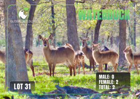 1.1 Waterbuck Combining durability and adaptability, Waterbuck stand out with their size and signature white ring markings, bringing strong visual appeal to any herd. The seller is offering a mature breeding pair of waterbuck. Pictures taken from the one of the herds on the ranch. Individual animal may vary slightly due to capture, but quality is consistent across the herd. Located in Burleson Co. Spring 2026 Global Wildlife Solutions Exotic Wildlife Auction | 24 | $ 5,000.00 |