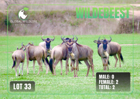 0.2 Wildebeest Wildebeest Females - Offering exposed mature wildebeest cows. The herd has a proven history of successfully producing offspring. They would make a strong and valuable addition to your herd. Pictures taken from the actual herd on the ranch. Individual animal may vary slightly due to capture, but quality is consistent across the herd. They located in Burleson County. Spring 2026 Global Wildlife Solutions Exotic Wildlife Auction | 33 | $ 5,000.00 |