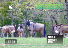 0.1 Wildebeest Wildebeest Female - Offered is a exposed mature wildebeest cow. The herd has a proven history of successfully producing offspring. This cow would make a strong and valuable addition to your herd. Pictures taken from the actual herd on the ranch. Individual animal may vary slightly due to capture, but quality is consistent across the herd. She is located in Burleson County. Spring 2026 Global Wildlife Solutions Exotic Wildlife Auction | 35 | $ 5,000.00 |