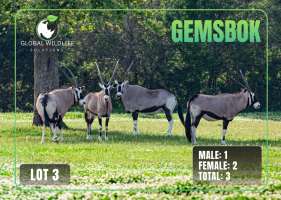 1.2 Gemsbok Offering Gemsbok that come from a proven herd with a reputation for quality and consistency. Strong genetics and careful management are evident throughout this offering. Pictures taken from the actual herd on the ranch. While minor variations may occur during handling, the overall standard remains high across the group. Located in Burleson Co. Spring 2026 Global Wildlife Solutions Exotic Wildlife Auction | 3 | $ 4,550.00 |