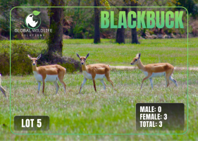 0.3 Blackbuck Three female Blackbucks, admired for their striking appearance, would be a great addition to any ranch. This ranch herd displays impressive genetics throughout. Pictures taken from the actual herd on the ranch. Animal may vary slightly due to catching, but quality is consistent across the herd. Located in Burleson Co. Spring 2026 Global Wildlife Solutions Exotic Wildlife Auction | 5 | $ 550.00 |