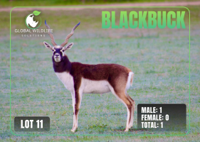 1.0 Blackbuck 1.0 A striking Blackbuck male commands attention with his bold color contrast and elegant horns. With a strong, athletic build and standout presence, he’s a show-stopping addition to any herd. Pictures taken from the actual herd on the ranch. Individual animal may vary slightly due to catching, but quality is consistent across the herd. The animal purchased will have a Minimum 18’’ length horns. Located in Burleson Co. Spring 2026 Global Wildlife Solutions Exotic Wildlife Auction | 11 | $ 2,225.00 |