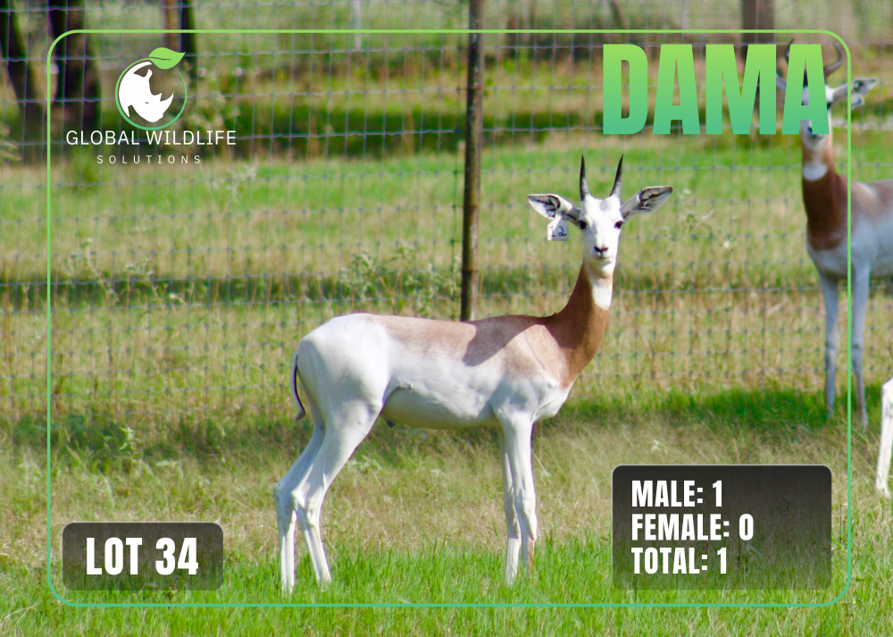 1.0 This young Dama Ram offers a unique opportunity to support conservation. Striking and rare, the photo depicts the actual animals available.