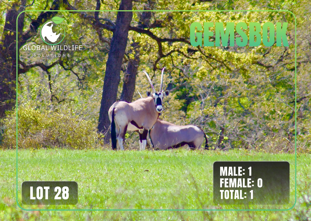 1.0 Gemsbok (#28) Spring 2026 Global Wildlife Solutions Exotic Wildlife Auction